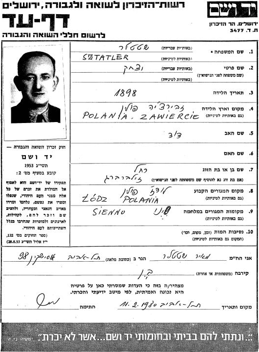 Leon Sztatler - Rishon LeZion, IsraelTestimony Page for Leon's Father Rafael Sztatler, Born 1901 in Olkusz, Poland - Perished 1942, Olkusz, Poland |